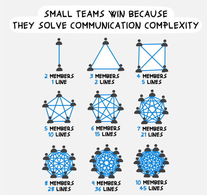 Small teams also benefit from talent density. You don’t need a hundred people. You just need five who care, who know how to own problems end-to-end, and who move with clarity. These teams don’t ask for permission. They ask what’s next.