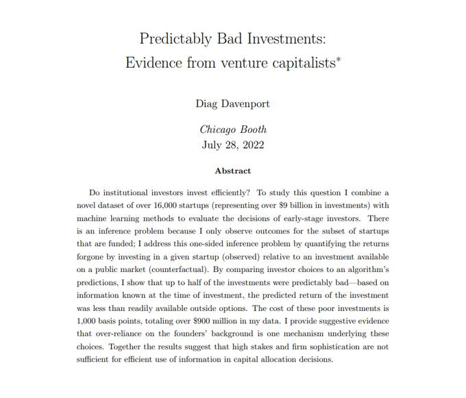 Repeated studies have shown that VCs overindex on shallow founder attributes, leading to predictably bad investments - and missed good investments. 🧠
