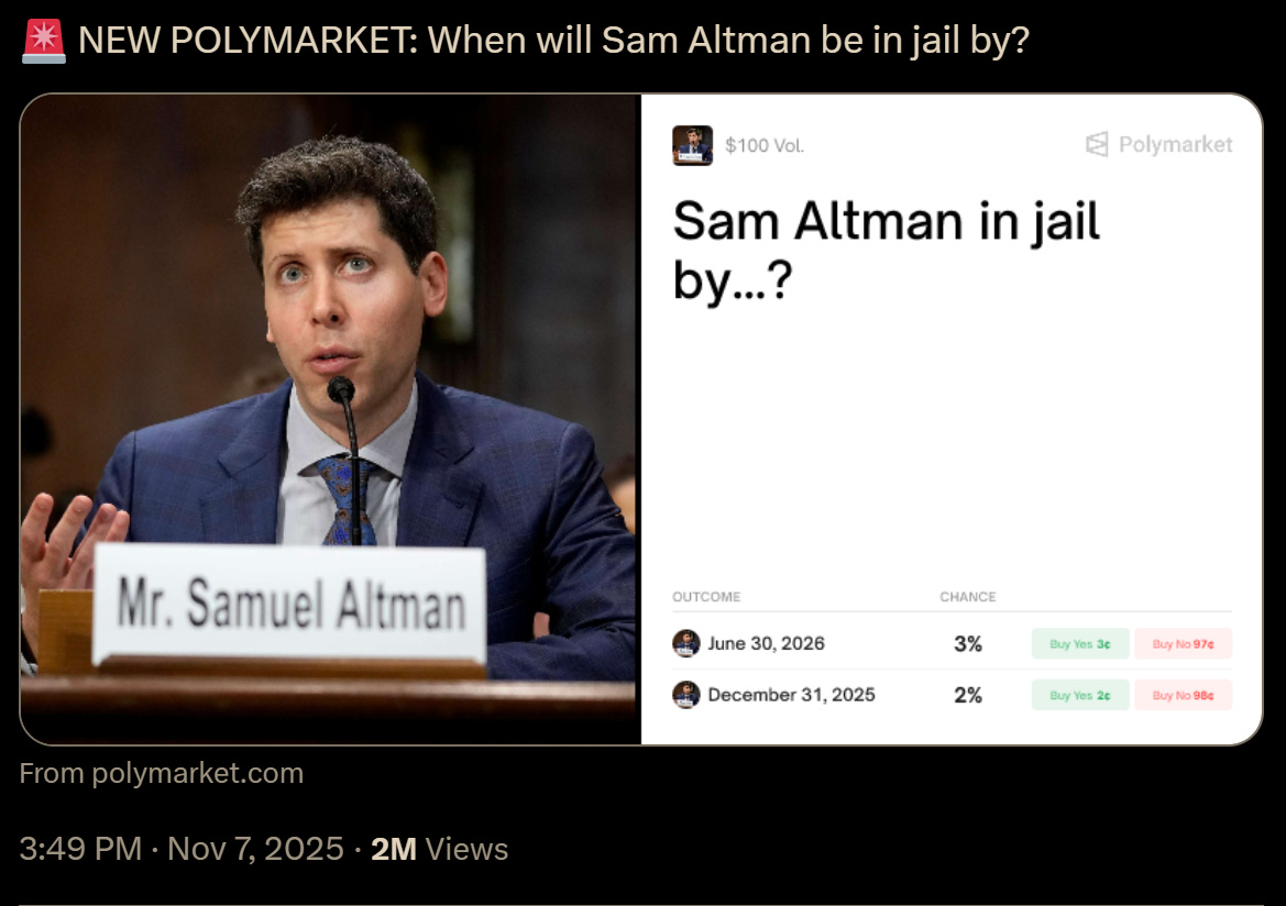 There is 9% chance that Sam Altman ends up in jail before July 2026 😮