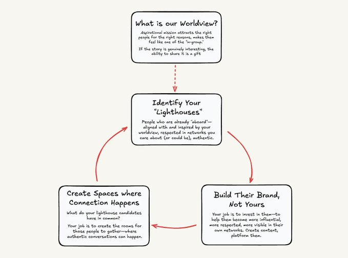 Founders identify aligned connectors who already influence concentrated audiences. Empowering those individuals to grow their own visibility creates reinforcing distribution loops. [a16z]