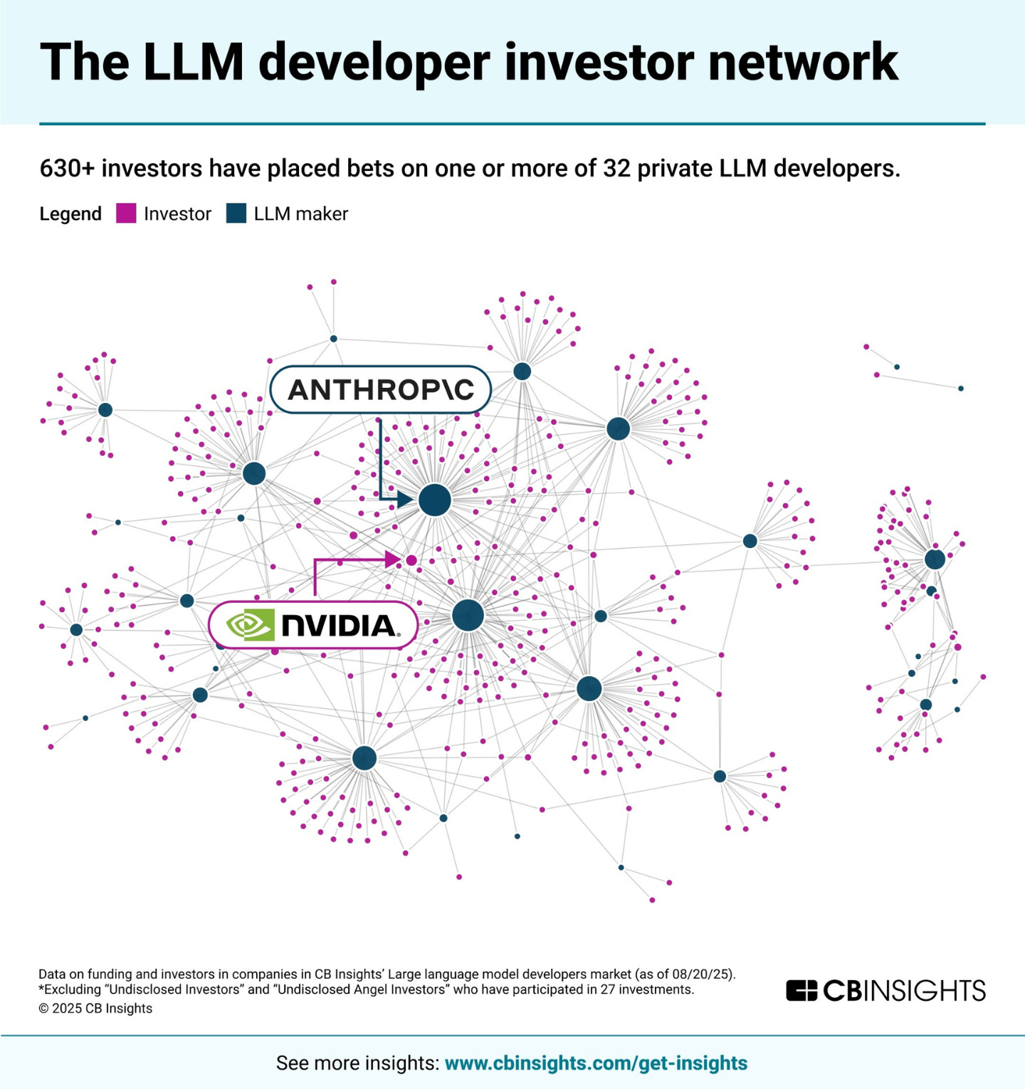 Over 630 investors have backed LLM startups, but the largest checks come from NVIDIA, Amazon, Microsoft, Alibaba, Salesforce, and Google. This mix of investors, suppliers, acquirers, and competitors is reshaping the tech ecosystem into a tightly connected network.