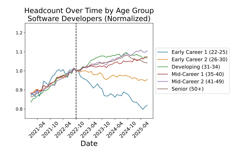 New research shows a sharp decline in entry-level jobs in AI-impacted fields like coding and customer service. While senior roles increase, younger workers face shrinking opportunities at the bottom of the career ladder. [Alex Wilhelm]