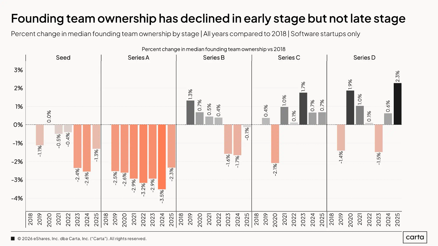 Ownership drops sharply by early rounds, with structural dilution accelerating through later stages. AI founders and solo builders are showing different retention patterns than historical norms. [carta]Claude Cowork Workflows Separate Power Users From Everyone Else ✂️