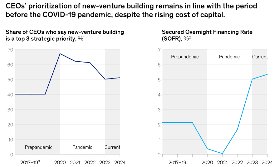 CEOs are leveraging venture building to achieve outsized growth despite market challenges.