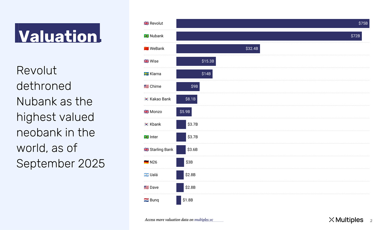 The UK neobank surpassed its Brazilian rival despite lower revenue and profit. London now counts 4 of the world’s 10 most valuable digital banks.