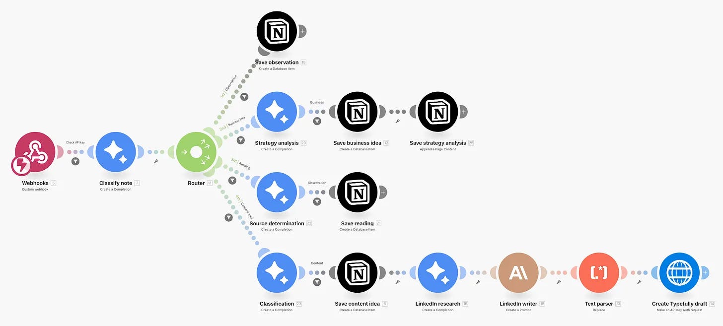 Here’s the play: voice memos, Make.com, and Notion. Thoughts go in messy, come out structured. AI turned my daily chaos into execution-ready clarity. [Jonas Braadbaart]
