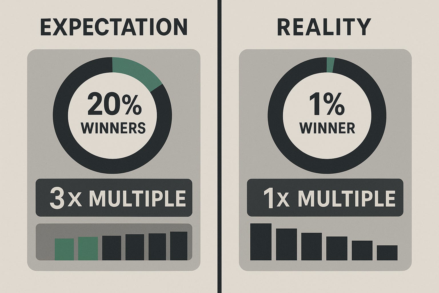 If your portfolio construction assumes 20% failures, 3× multiples on winners, and you forget that reserves dilute the base invested capital, you’ve already built in a loss before picking one company.
