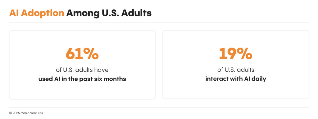 Menlo Ventures finds 61% of U.S. adults and 1.8B globally use AI while only 3% pay for it. Adoption is strongest among parents, students, and workers with opportunities in health, finance, logistics, and connection.The AI Agent Tech Stack: 135+ Startups Fuel the Next Wave 🤖