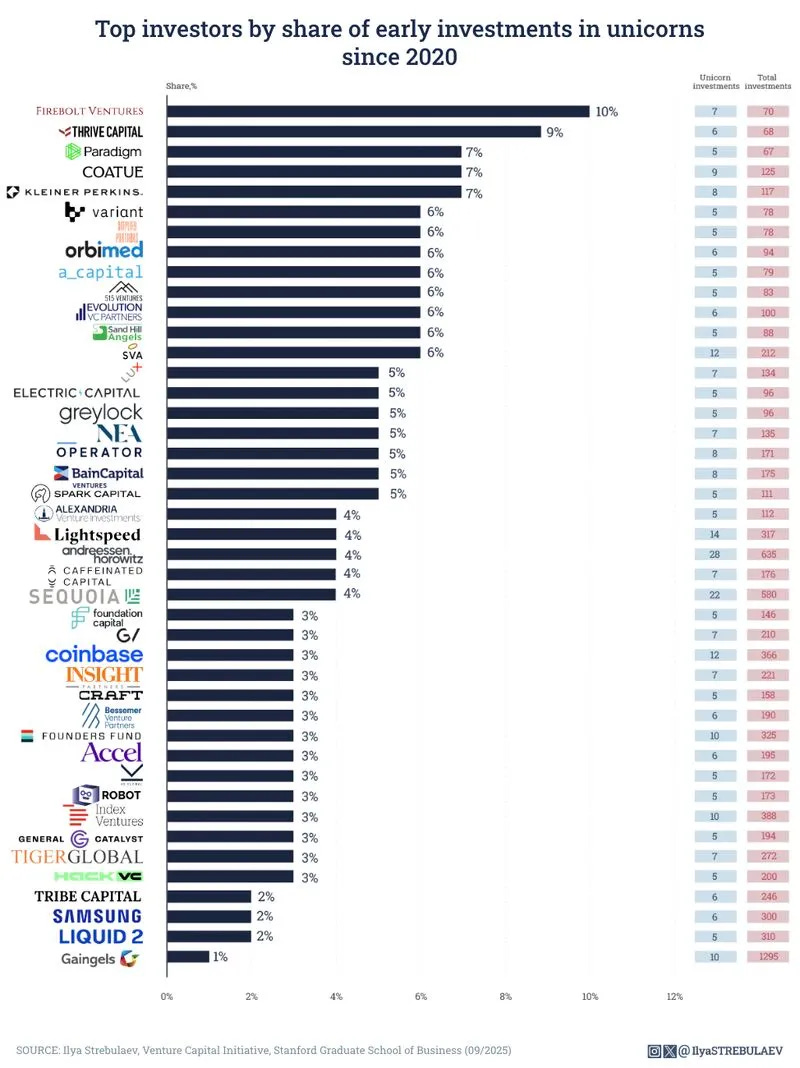 Andrew Chen’s data shows churn is almost impossible to fix and revenue retention can expand even as usage falls. For AI apps, retention must be strong from day one to reach product-market fit. [Andrew Chen]Venture Funds Ranked by Unicorn Hit Rates 🦄