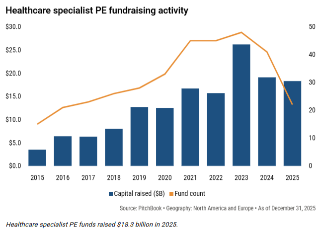 PitchBook’s March 2026 report covers equity, debt, commodities, and private markets. It breaks down deal activity, fundraising, IPOs, lending, and unicorn creation during a volatile market.Healthcare Capital Splits Between PE Concentration and VC Contraction 💰