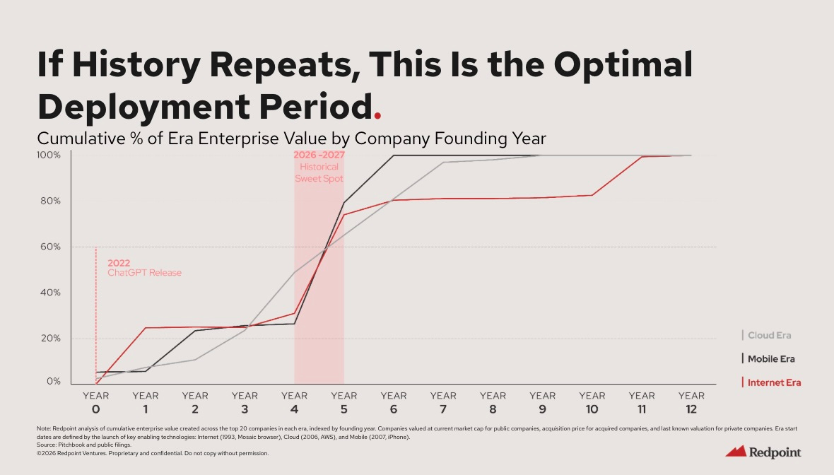 Largest opportunity sits in replacing outsourced services rather than augmenting software users. Control of workflows and data enables expansion into higher judgment tasks over time. [Sequoia]Year Four of Platform Shifts Is Where Durable Leaders Emerge ⏳