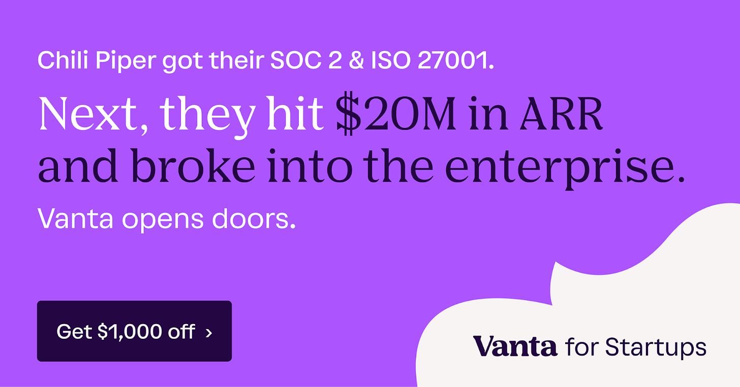 Vanta’s solution automates up to 90% of the work for ISO 27001, SOC 2, and more, making it easier for startups to maintain continuous compliance and build trust with customers.