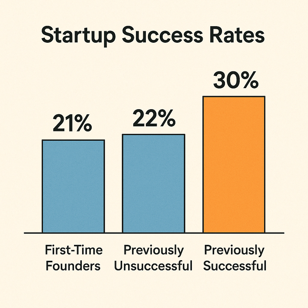 According to Harvard Business School research, first-time founders succeed around 21% of the time. For those who have failed previously, the odds tick up slightly to 22%. But for founders who’ve already had one success?