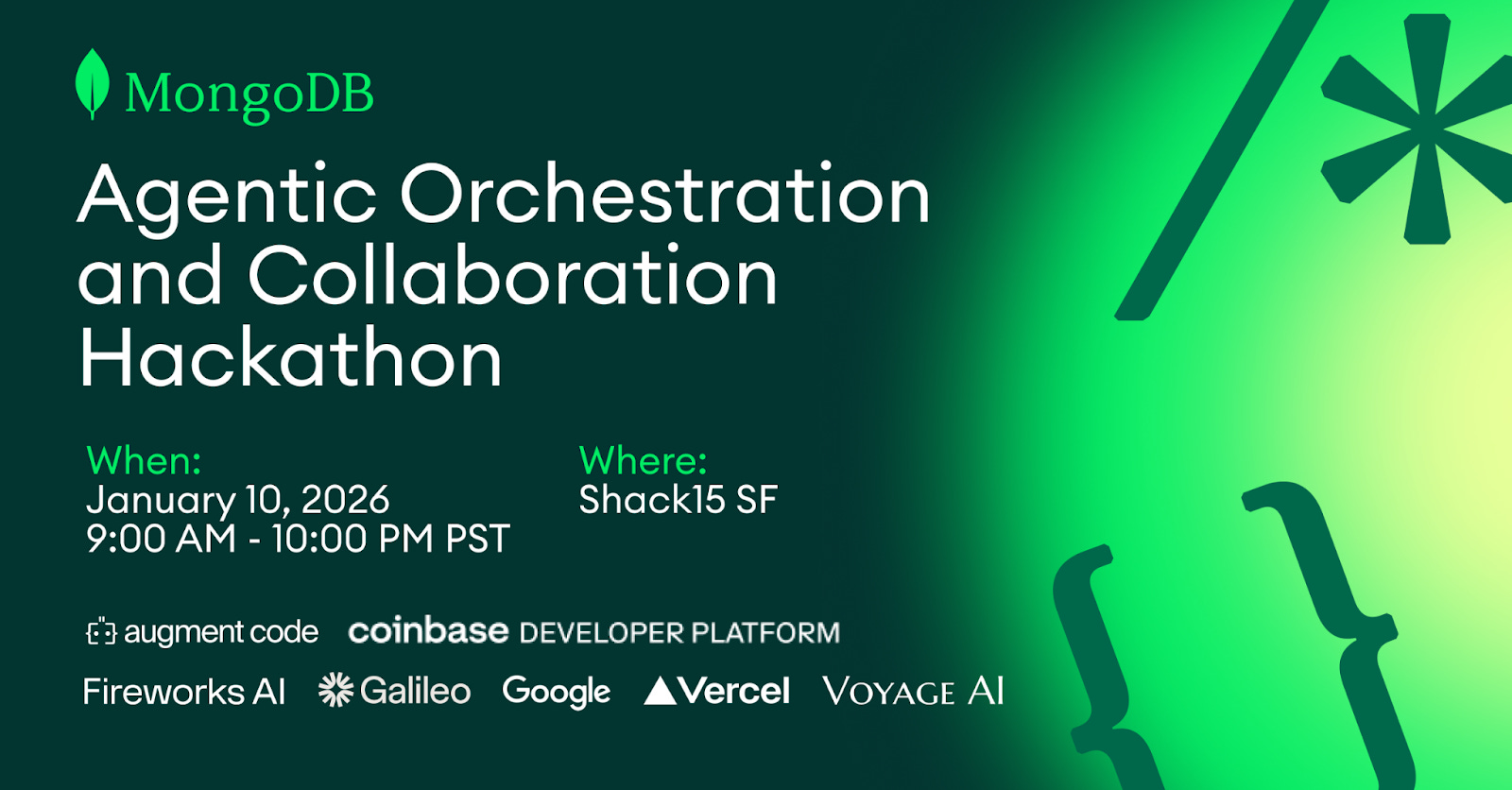 MongoDB, in partnership with Cerebral Valley, and top AI startups like Voyage AI, Fireworks, and Vercel, is hosting an Agentic Orchestration and Collaboration Hackathon in San Francisco on January 10th. They’re gathering the best AI hackers to build the future of agentic collaboration: